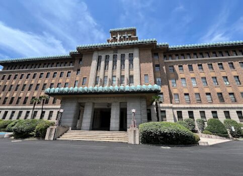 水戸城三の丸跡に建つ行政施設で、歴史と現代が融合する場所です。