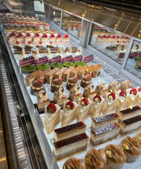 店内には、芸術品のように美しく仕上げられたケーキや香り豊かな焼き菓子がずらりと並び、見るだけで心が躍ります。