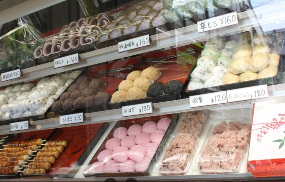 店内には、おはぎや大福・団子などが並び、どれも丁寧に仕上げられた優しい甘さが魅力。