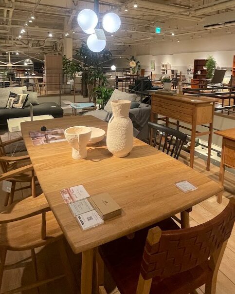 上質な木材を活かしたシンプルで長く使えるデザインが特徴で、店内は落ち着いた雰囲気の中じっくり選べる空間。