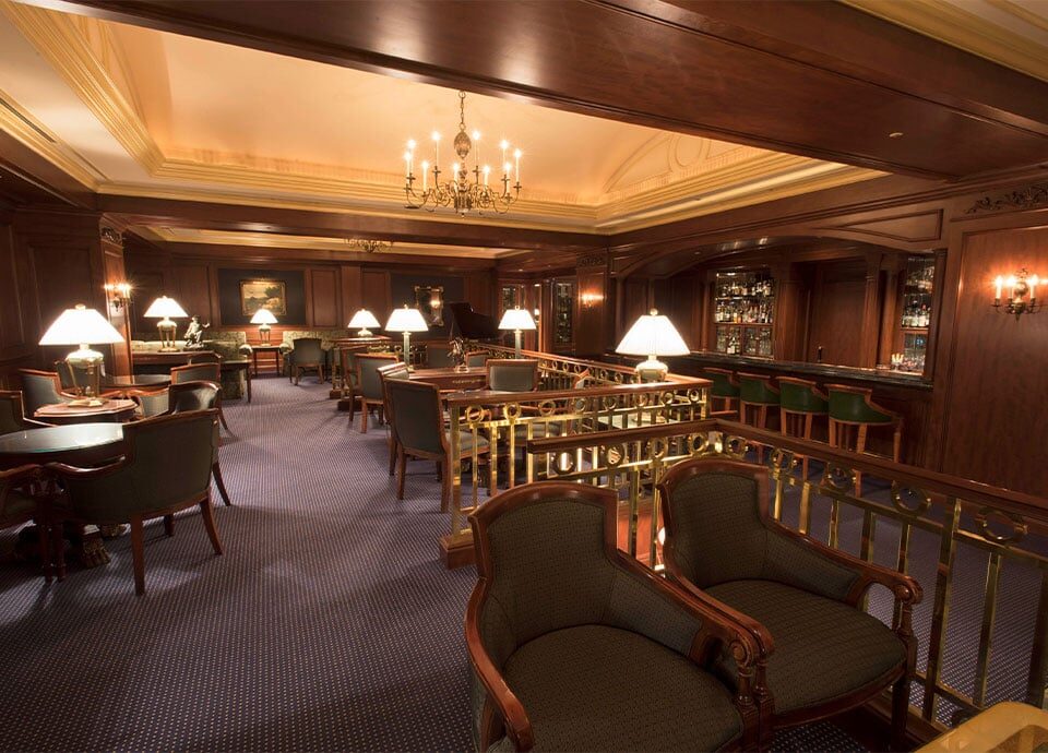英国調のクラシカルなインテリアで統一された本格的なバー。
